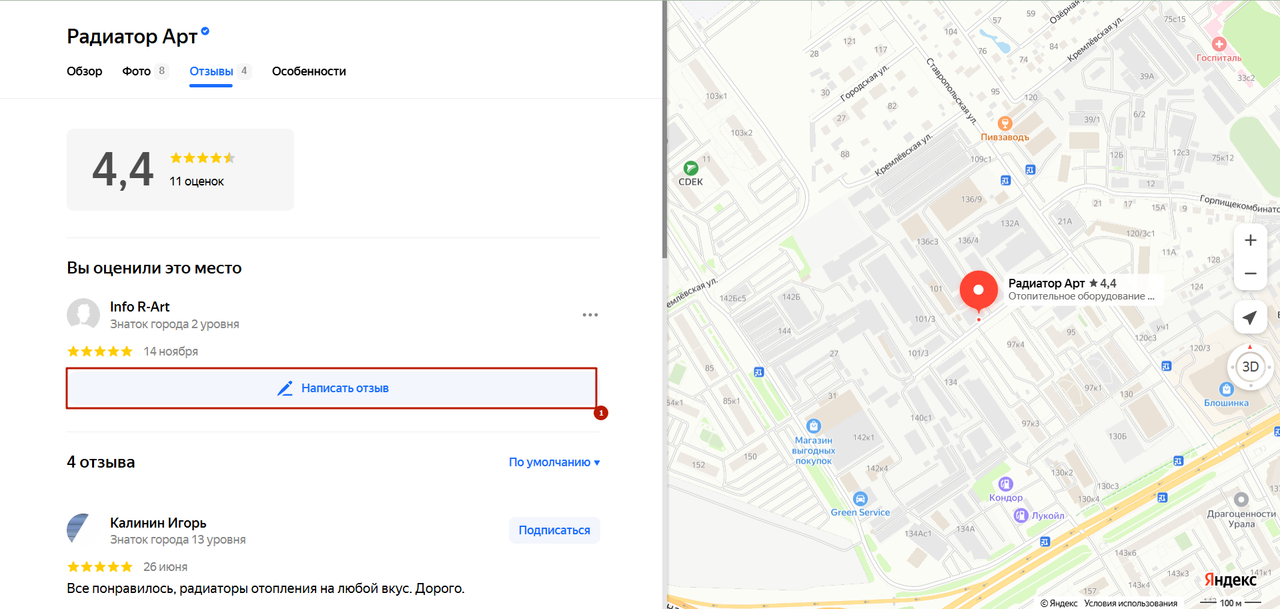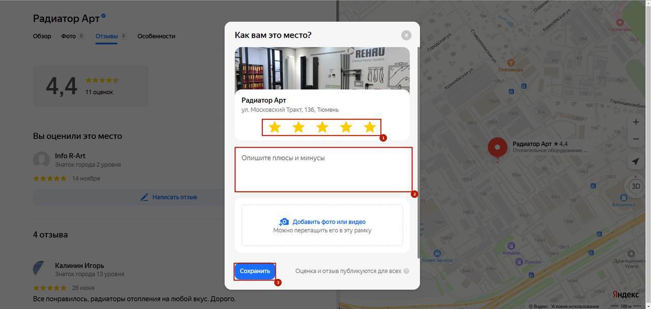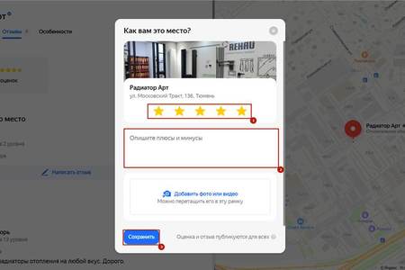 Вариант 2.Добавить отзыв на организацию в Яндекс Картах