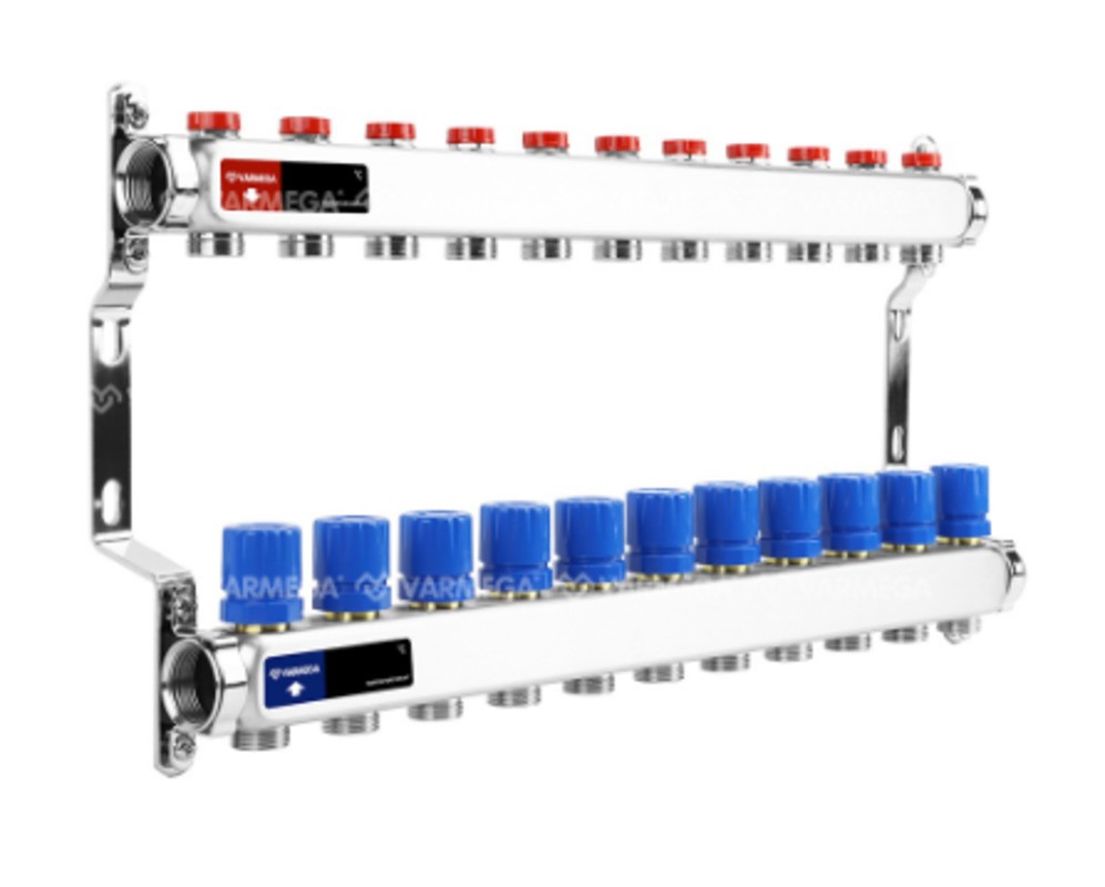 Коллекторные группы предварительной сборки из нержавеющей стали с балансировочными и термостатическими вентилями марки Varmega предназначены для распределения и регулирования потоков теплоносителя в низко- и высокотемпературных системах отопления. Оснащены балансировочными вентилями на подающем коллекторе и термостатическими вентилями с размером M30x1,5 (с возможностью установки термоэлектрических приводов) на обратном коллекторе. Каждый коллектор подвергается в заводских условиях проверке на функционирование и герметичность уплотнений.