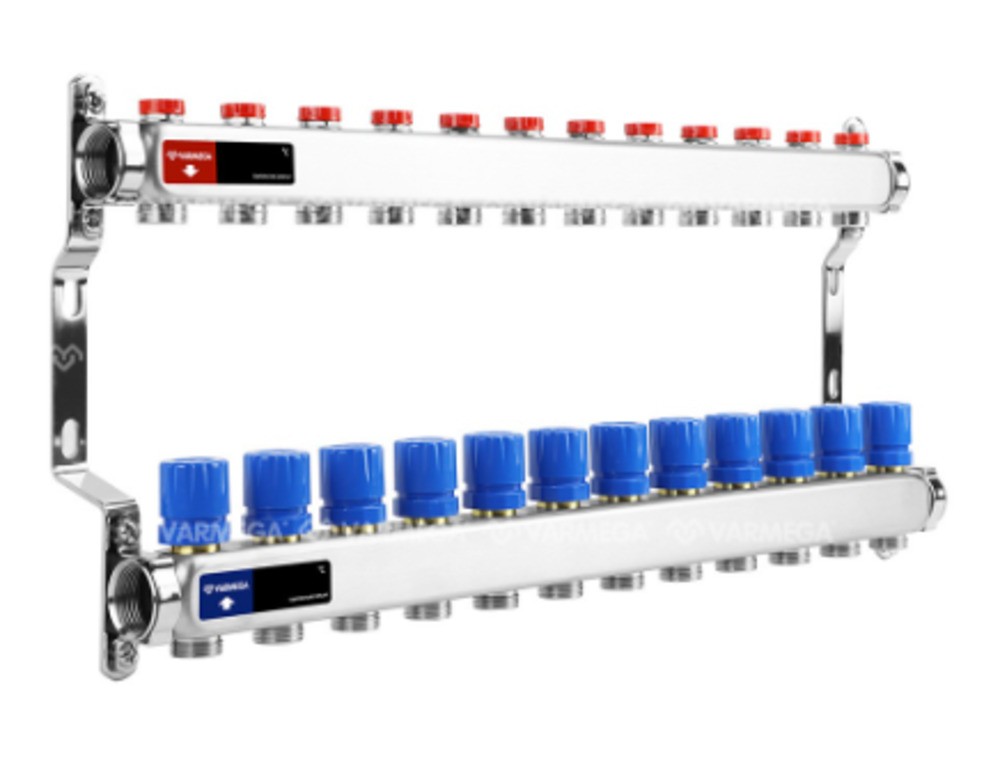 Коллекторные группы предварительной сборки из нержавеющей стали с балансировочными и термостатическими вентилями марки Varmega предназначены для распределения и регулирования потоков теплоносителя в низко- и высокотемпературных системах отопления. Оснащены балансировочными вентилями на подающем коллекторе и термостатическими вентилями с размером M30x1,5 (с возможностью установки термоэлектрических приводов) на обратном коллекторе. Каждый коллектор подвергается в заводских условиях проверке на функционирование и герметичность уплотнений.