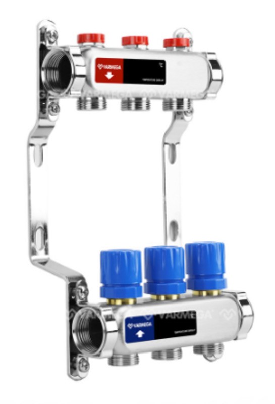 Коллекторные группы предварительной сборки из нержавеющей стали с балансировочными и термостатическими вентилями марки Varmega предназначены для распределения и регулирования потоков теплоносителя в низко- и высокотемпературных системах отопления. Оснащены балансировочными вентилями на подающем коллекторе и термостатическими вентилями с размером M30x1,5 (с возможностью установки термоэлектрических приводов) на обратном коллекторе. Каждый коллектор подвергается в заводских условиях проверке на функционирование и герметичность уплотнений.