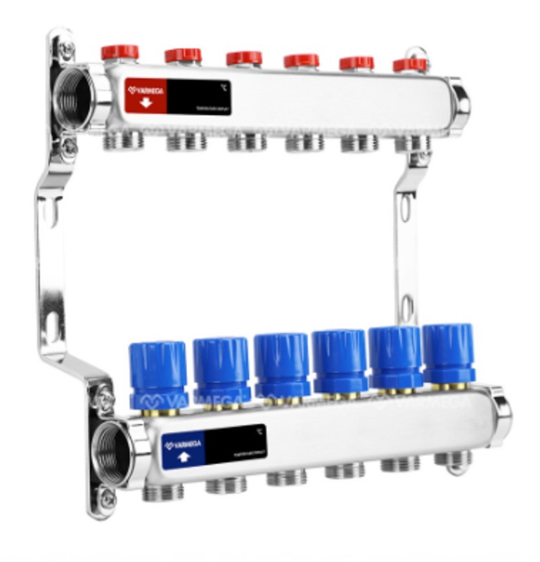 Коллекторные группы предварительной сборки из нержавеющей стали с балансировочными и термостатическими вентилями марки Varmega предназначены для распределения и регулирования потоков теплоносителя в низко- и высокотемпературных системах отопления. Оснащены балансировочными вентилями на подающем коллекторе и термостатическими вентилями с размером M30x1,5 (с возможностью установки термоэлектрических приводов) на обратном коллекторе. Каждый коллектор подвергается в заводских условиях проверке на функционирование и герметичность уплотнений.