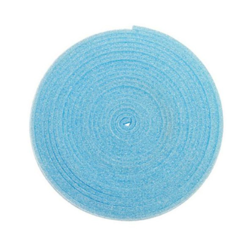 Демпферная лента Varmega изготовлена из вспененного полиэтилена голубого цвета с закрытой ячеистой структурой.