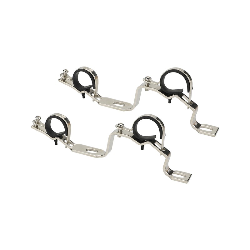 Кронштейны предназначены для крепления к несущей конструкции (стене или коллекторному шкафу) подающего и обратного коллекторов из нержавеющей стали Varmega серий VM151XX, VM155XX. Кронштейны состоят из стальной крепежной планки, к которой винтами крепится пара стальных никелированных хомутов с пластиковыми прокладками. Прокладки служат тепло- и виброзащитой, а также предохраняют коллекторы от механических повреждений. Кронштейны обеспечивают регулируемое расположение коллекторов между осями от 195 и до 235 мм. Комплект состоит из 2-х штук.