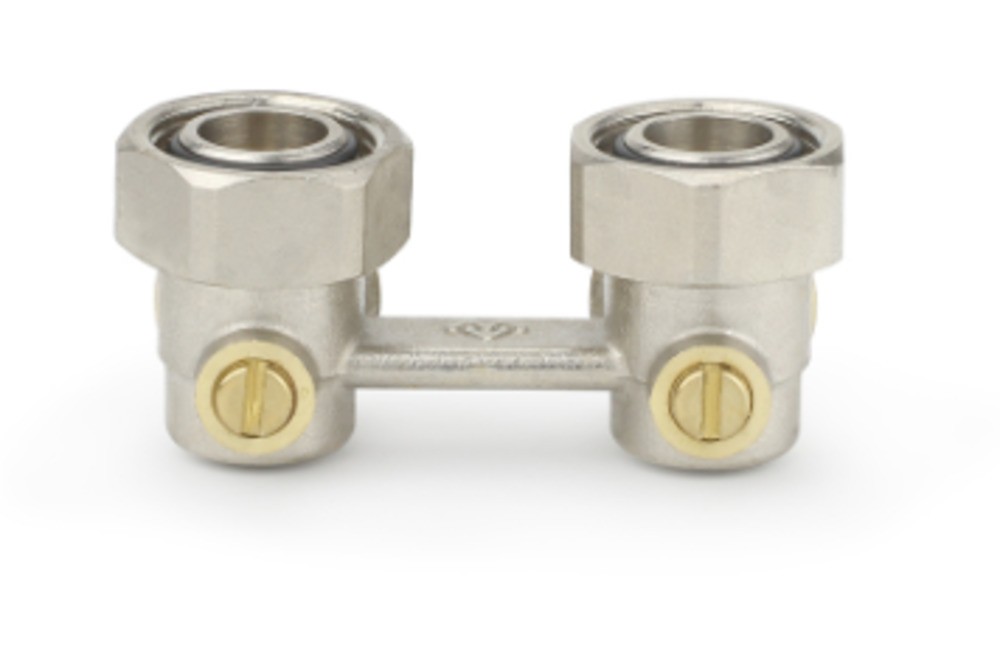 Запорно-присоединительный узел для двухтрубной системы отопления состоит из Н-образного корпуса со встроенными шаровыми запорными кранами. На патрубках радиатора узел фиксируется при помощи накидных гаек, герметичность соединения обеспечивают кольцевые уплотнения, установленные на верхних штуцерах. Для соединения с трубопроводами системы отопления, нижняя часть узла оборудована наружной резьбой для присоединения компрессионных фитингов типа «Евроконус». У запорно-присоединительного узла в угловом исполнении корпус выполнен в виде угольника, что позволяет производить подключение радиатора к трубопроводам, скрытым в стенах.