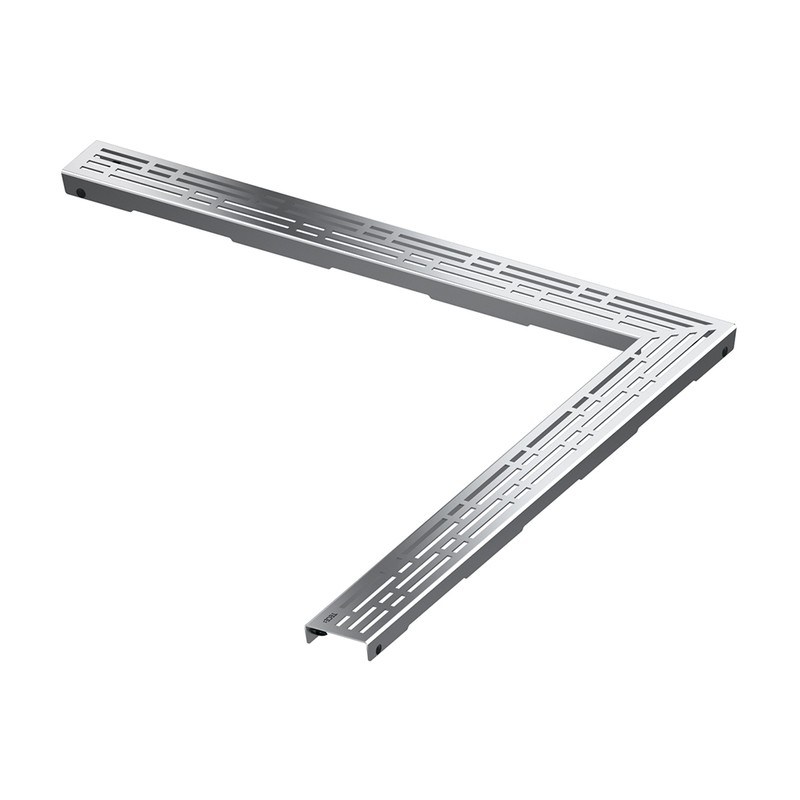 Декоративная решетка для душевого канала TECEdrainline, угловое исполнение с углом 90°, из нержавеющей стали для установки в корпус канала, несущая способность в соответствии с классом нагрузки K3 — испытательная нагрузка 300 кг, из двух частей.