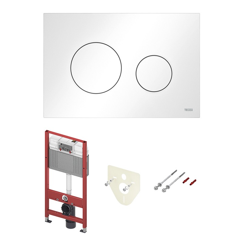 - Комплект для установки унитаза: застенный модуль, пластиковая панель смыва TECEloop, белая
