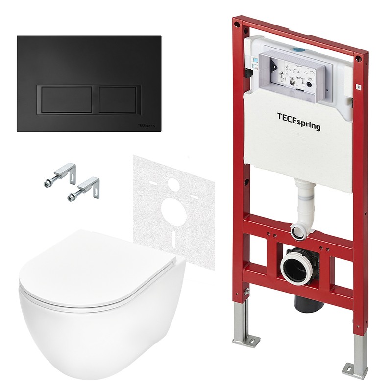 - Комплект TECEspring Base, панель смыва с прямоугольными кнопками, черный матовый, унитаз модель R