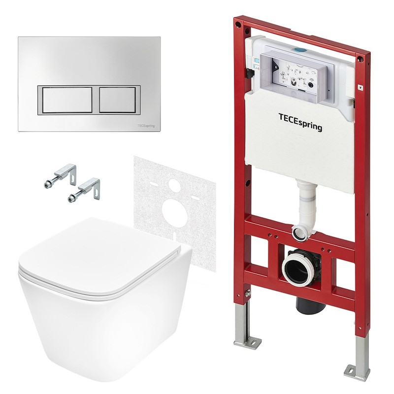 - Комплект:застенный модуль, панель смыва TECEspring V, хром глянцевый,унитаз TECEspring S