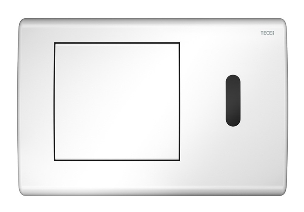 - Металлическая панель смыва для унитаза TECEplanus с ИК-сенсором, батарея 6 В, белая глянцевая