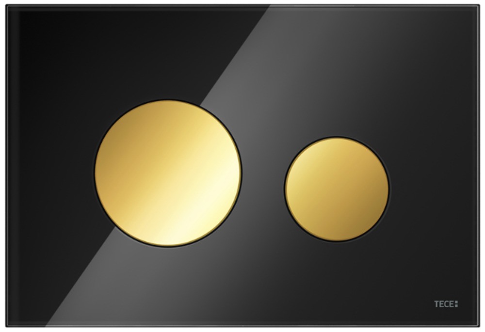- Стеклянная панель смыва для унитаза TECEloop, стекло черное, клавиши позолоченные