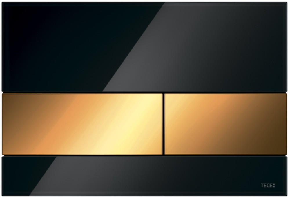 - Стеклянная панель смыва для унитаза TECEsquare, стекло черное, клавиши позолоченные